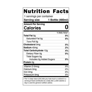 Water, Erythritol, Carbon Dioxide, Stevia Extract, Citric Acid, Sodium Bicarbonate, Sucralose, Green Tea Extract, Artificial Flavors, Caramel Colour