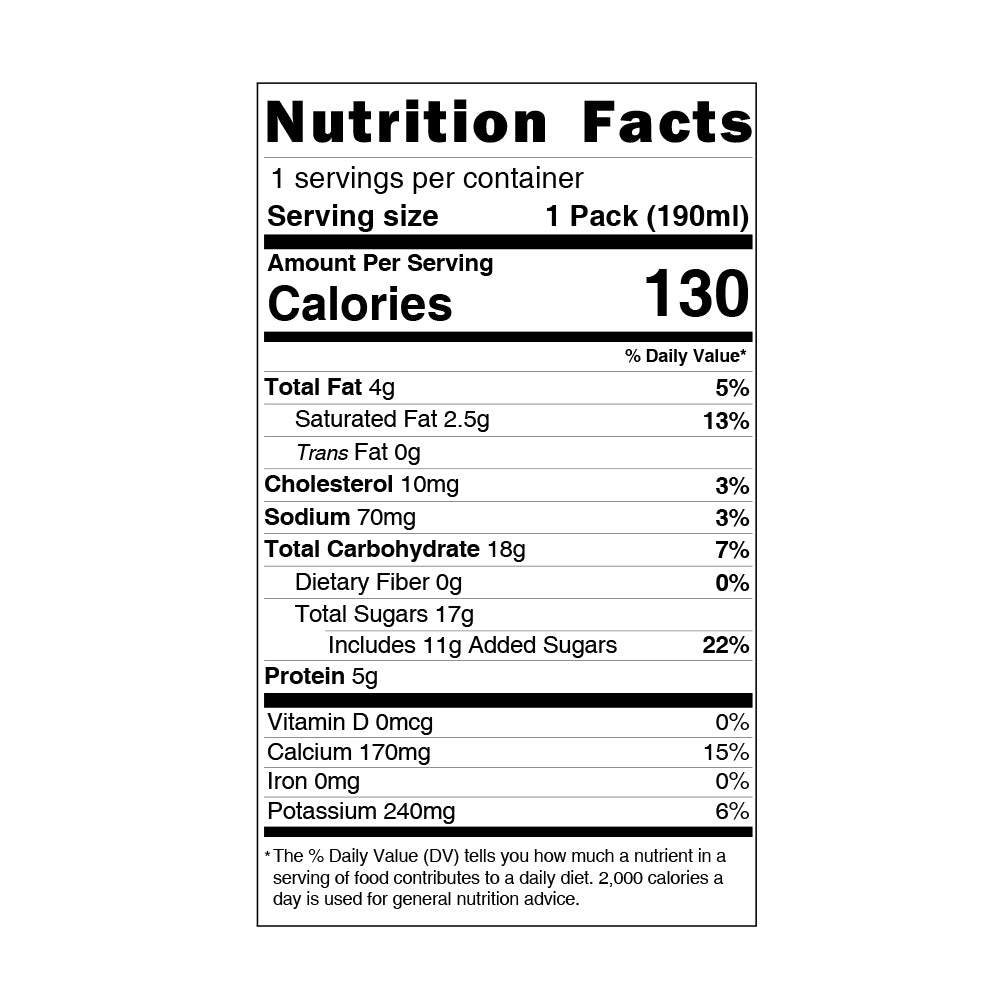 Raw Milk, Filtered Water, Sugar, High Fructose Corn Syrup, Skim Milk Powder, Coffee Powder, Coffee Flavor (Artificial)