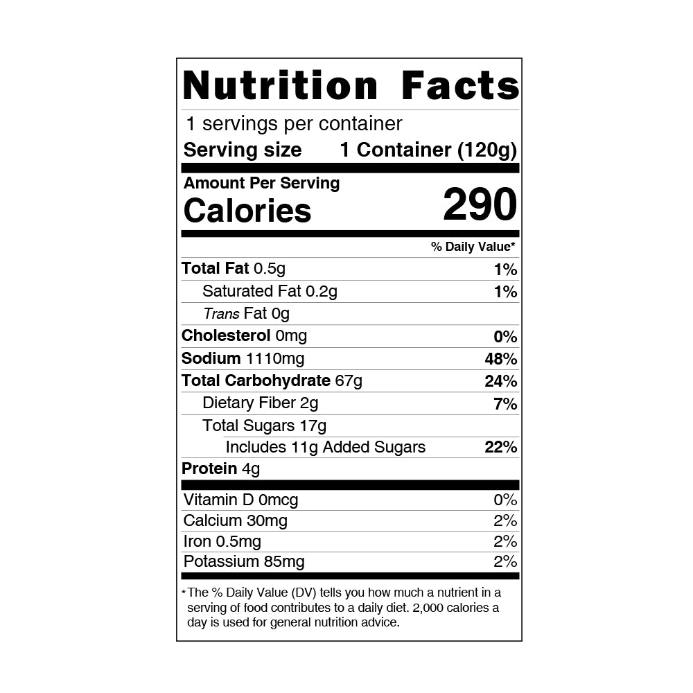 RICE CAKES: Rice, Salt, Ethanol, Citric Acid, Inuline (Chicory), Rice Bran SAUCE PACKET: Sugar, Glucose (Corn Starch), Red Pepper Powder, Salt, Monosodium Glutamate, Mixed Seasoning [Spicy Sauce (Red Pepper Paste, Soybean Paste, Red Pepper Powder), Maltodextrin, Salt], Modified Starch (Corn Starch), Wheat Flour, Vegetable Flavor (Garlic Extract, Kelp Extract, Green Onion Extract, Ginger Extract), Dried Spring Onion, Corn Starch, Silica Dioxide, Soybean Powder, Mixed Seasoning (Corn Starch, Soy Sauce, Yeast Extract), Cabbage Powder, Onion Powder, Mixed Cheese Powder (Cheese, Refined Coconut Oil, Starch Syrup, Lactose, Sodium Casein, Salt), Oleoresin Paprika, Artificial Flavor (Roasted Sweet Potato Flavor), Curry Flavor, Black Pepper Powder, Guar Gum Powder, Flavor Enhancer (Soy Sauce Powder, Yeast Extract, Salt), Xanthan Gum, Spice Oleoresins, Ginger Powder, Mixed Seasoning (Hydrolyzed Protein, Maltodextrin, Salt), Mixed Seasoning HYB (Hydrolyzed Soy Protein, Salt, Maltodextrin)