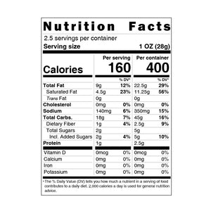 Corn Grits, Palm Oil, Sugar, Spices (Garlic Powder, Onion Powder, Chili Powder), Hydrolyzed Protein (Hydrolyzed Soy Protein, Rapeseed Oil), Soy Sauce Powder (Maltodextrin, Soy Sauce (Water, Soybeans, Wheat, Salt), Salt, Monosodium Glutamate, Caramel Color, Disodium Inosinate, Disodium Guanylate, Rice Bran Oil), Seasoning (Monosodium Glutamate, Disodium Inosinate, Disodium Guanylate), Salt, Citric Acid, Silicon Dioxide, Paprika Color, Spice Extract (Spice Extract (Chili Pepper, Black Pepper), Sunflower Oil), Sucralose