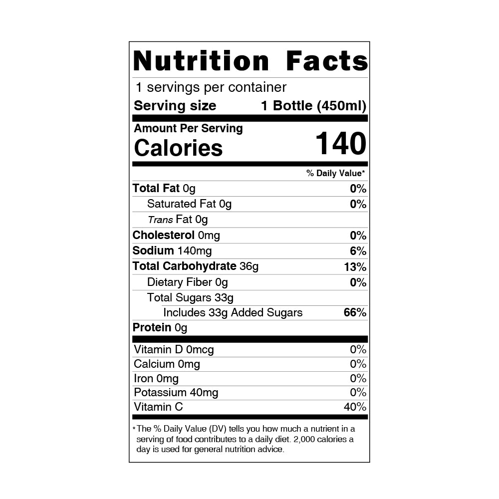 Water, Sugar, Black Tea, Concentrated Lemon Juice, Black Tea Powder, Ascorbic Acid (to Ensure Freshness & as Vitamin C), Citric Acid, Sodium Citrate, Salt, Stevia Extract, Sucralose, Artificial Flavorings, Sodium Erythorbate (to Ensure Freshness)