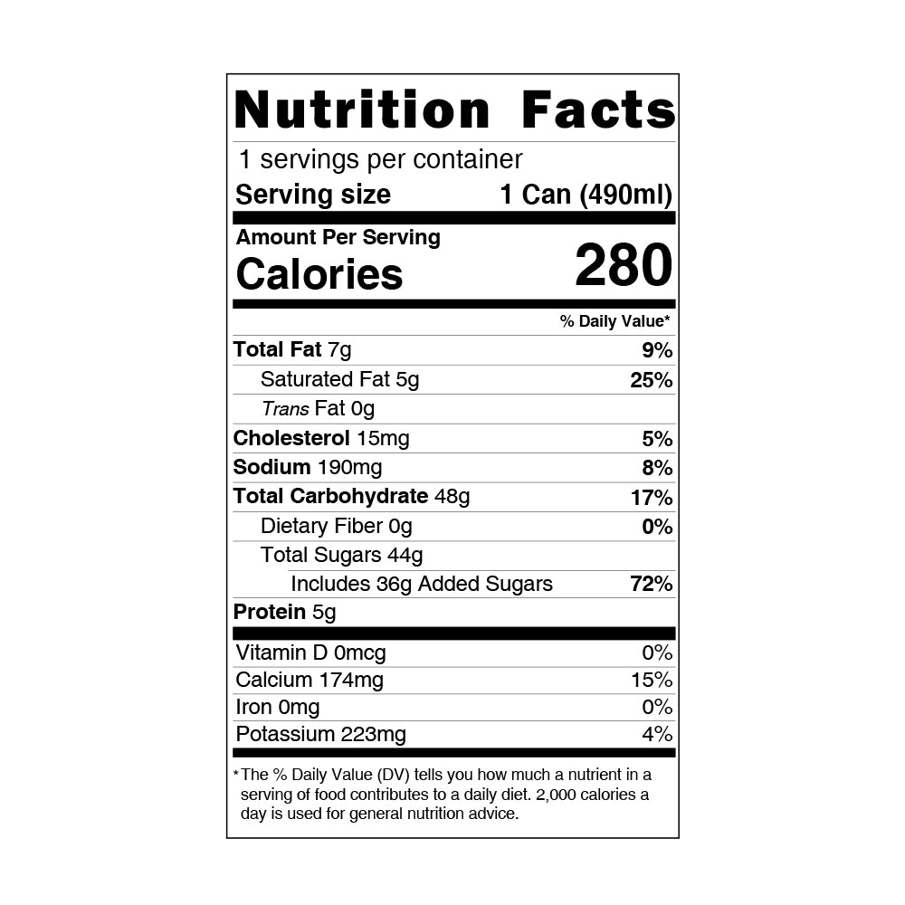 Water, Sugar, Starch Ball, Whole Milk Powder, Non-Dairy Creamer (Glucose Syrup, Hydrogenated Vegetable Fat (Coconut Oil), Sodium Caseinate (a Milk Derivative), Dipotassium Phosphate, Sodium Tripolyphosphate, Mono- and Diglycerides, Mono- and Diglycerides Citrated, Silicon Dioxide, Beta-Carotene), Maltodextrins, Matcha Powder (Matcha Grinding Powder, Lactose Flavor, Food Color (FD&C Yellow No.5, FD&C Blue No.1), Ascorbic Acid), Green Tea Powder, Emulsifiers (Mono- and Diglycerides, Sodium Stearoyl Lactylate, Carrageenan), Artificial Flavor, Sodium Bicarbonate, Salt, Mono- and Diglycerides, Color Added (FD&C Yellow No.5, FD&C Blue No.1)
