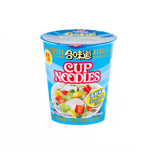 Wheat Flour, Palm Oil, Modified Tapioca Starch, Dehydrated Vegetables [Cabbage (Cabbage, Lactose), Corn, Carrot, Green Onion], Salt, Non-Dairy Creamer [Glucose Syrup, Hydrogenated Palm Oil, Sodium Caseinate (a Milk Derivative), Potassium Phosphate Monobasic, Mono- and Diglycerides, Silicon Dioxide], Dehydrated Cuttlefish, Soy Sauce Powder (Soybeans, Wheat, Salt), Monosodium Glutamate, Maltodextrin, Hydrolyzed Soy Protein, Dehydrated Seafood Stick (Pollack Fish, Corn Starch, Potato Starch, White Sugar Flavors, Wheat Starch, Monosodium Glutamate, Salt, Spice and Coloring), Garlic Powder, Seafood Powder (Shrimp, Clams, Anchovy, Salt, Monosodium Glutamate), Autolyzed Yeast Extract, Dried Whole Milk, Carrot Powder, Onion Powder, Calcium Carbonate, White Pepper Powder, Ginger Powder, Potassium Carbonate, Dextrose, Ginger Chips (Ginger, Lactose), Disodium Guanylate, Disodium Inosinate, Sodium Tripolyphosphate, Guar Gum, Black Pepper Powder, Sodium Carbonate, Artificial Flavor, Citric Acid, Xanthan Gum, Chili Powder, Tocopherols (Preservative)